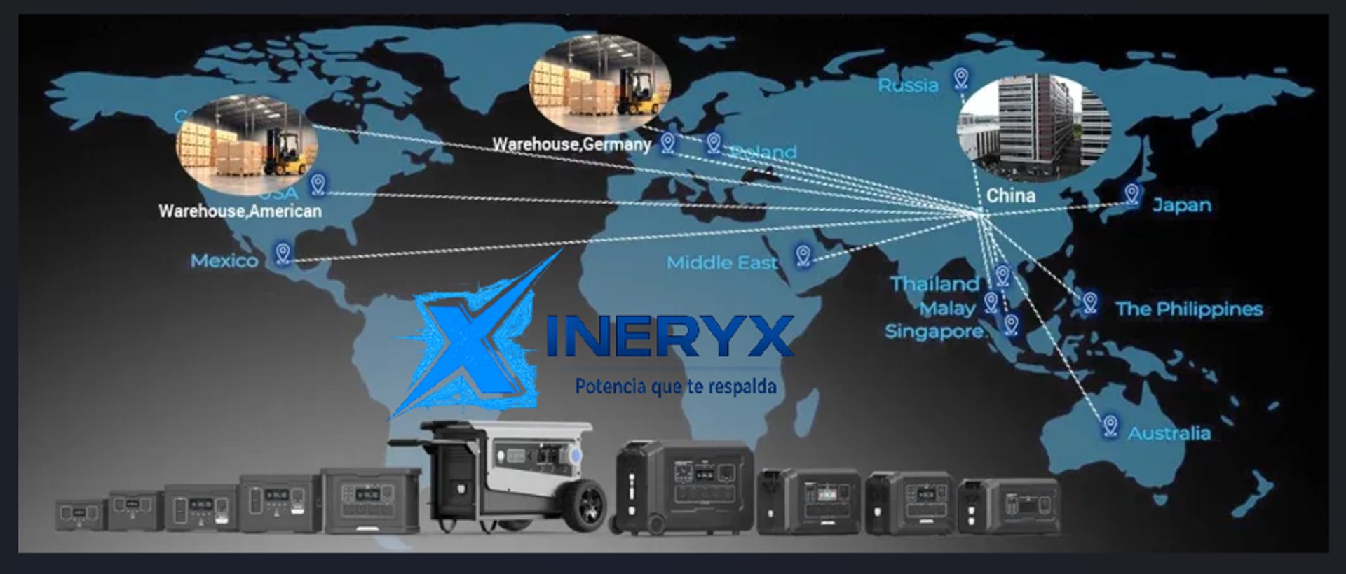 INERYX es fabricante directo de sus propias estaciones de energía y sistemas de almacenamiento eléctrico. Nuestro modelo elimina intermediarios y costos innecesarios, evitando el uso de tiendas físicas y sucursales costosas. Distribuimos directamente desde nuestra planta en China o desde nuestro centro logístico en Estados Unidos, lo que nos permite ofrecer productos de alta calidad a precios accesibles en todos los mercados donde tenemos presencia.
