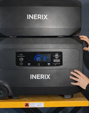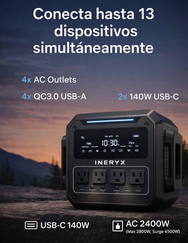 Cada unidad INERYX combina baterías de alta capacidad, tecnología de onda pura, múltiples salidas AC y DC, y pantallas inteligentes que te permiten monitorear el consumo en tiempo real. Conecta herramientas, electrodomésticos, equipos electrónicos o sistemas esenciales con total seguridad y estabilidad.